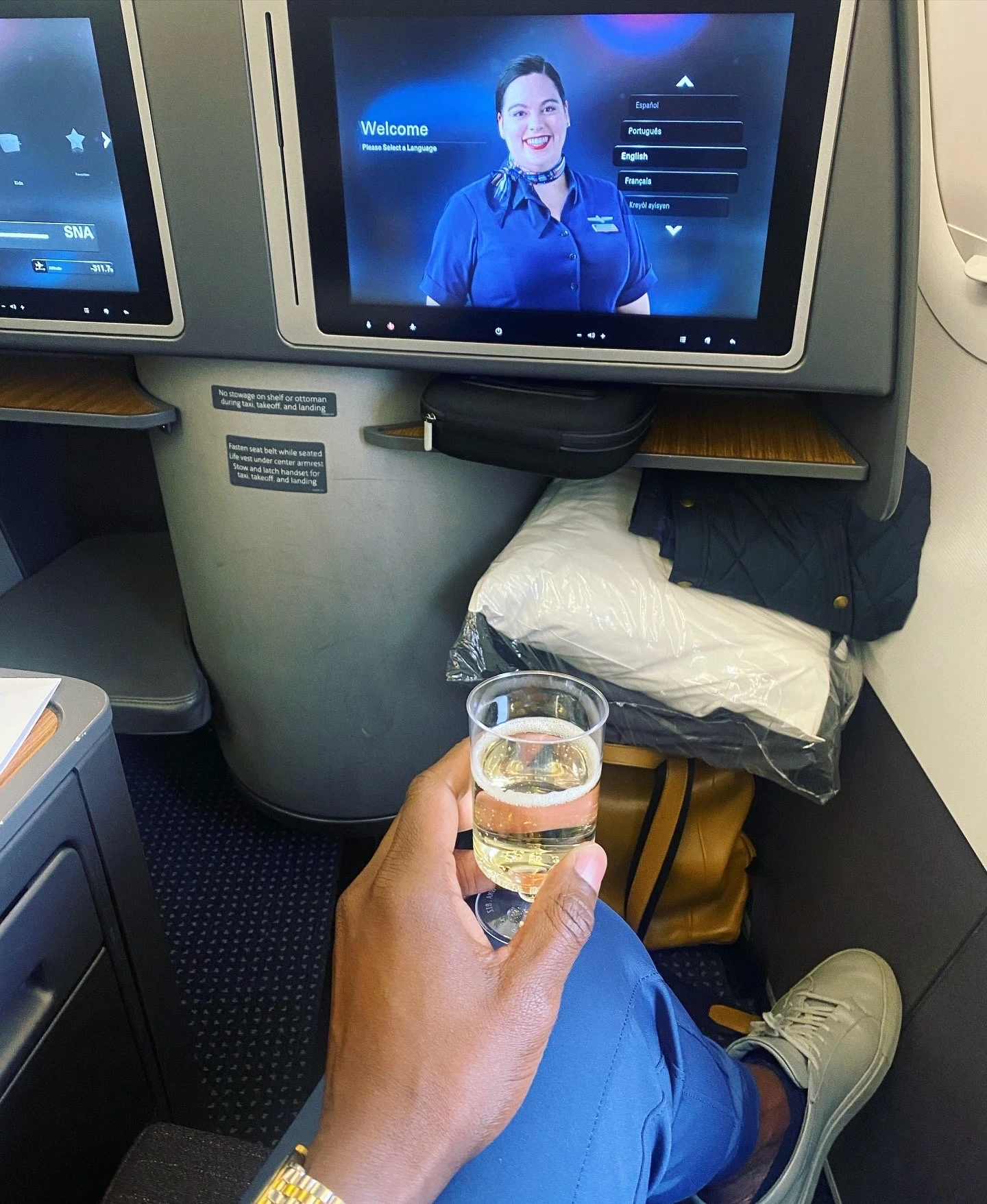 Welcome drink served on AA’s flagship service from JFK to SNA